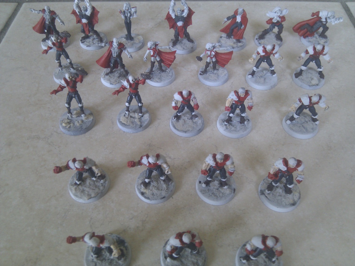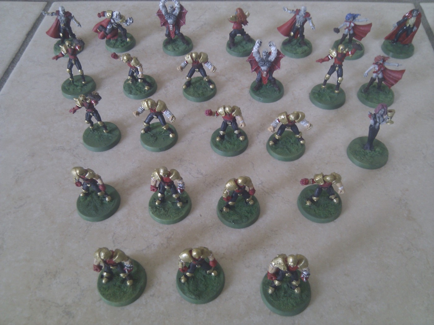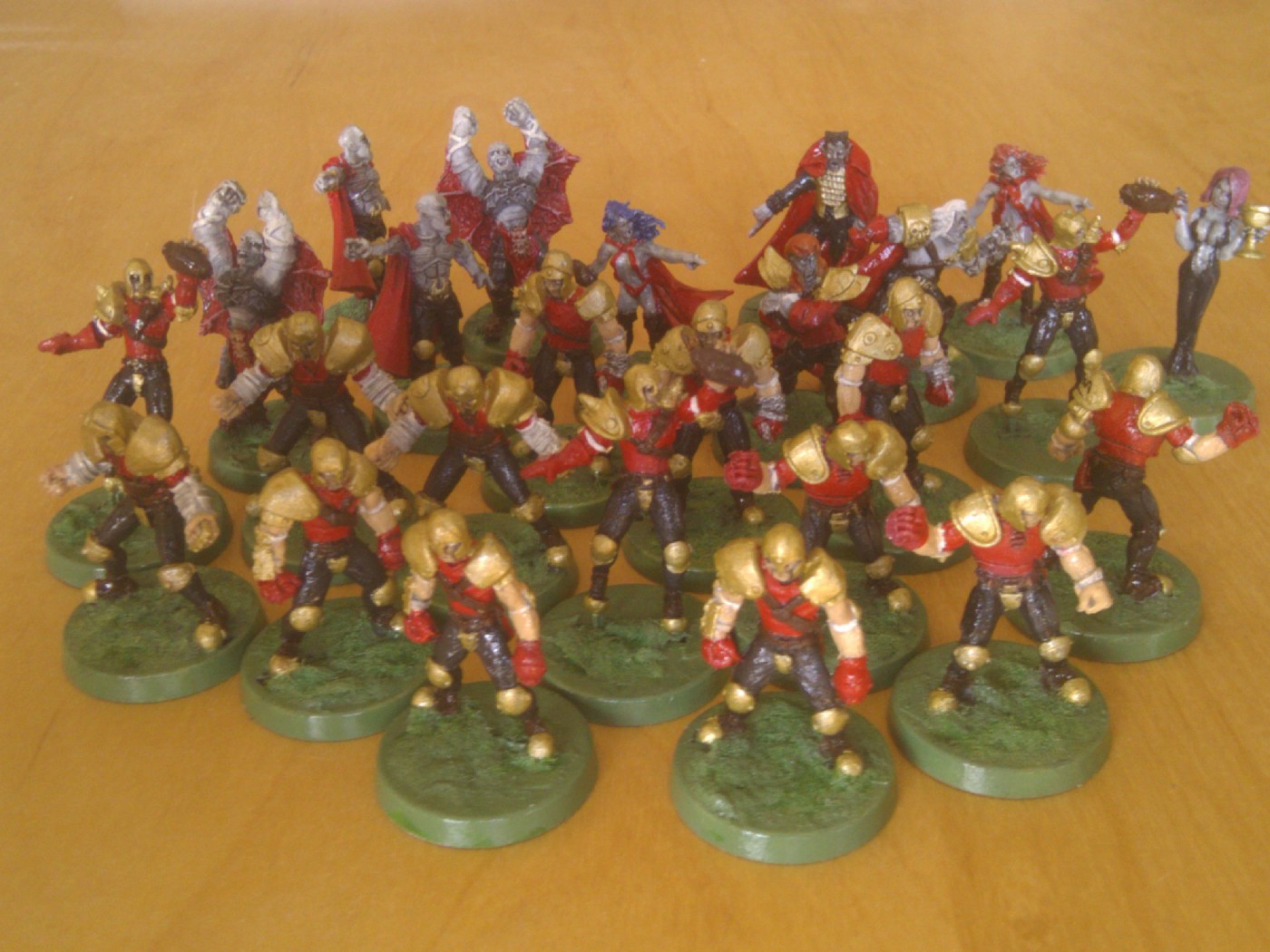Here is a tryout of speed painting on a full 28mm vampire team (25 figurins) for Bloodbowl. There are 1h - 3h of work for each of the 10 steps.